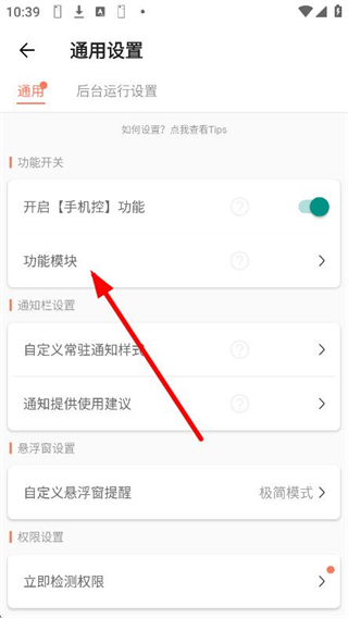 3、在通用设置页面,找到并点击上方的功能模块选项。