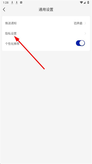 3、在通用设置页面里,选择隐私设置选项并点击,进入隐私权限的管理界面。