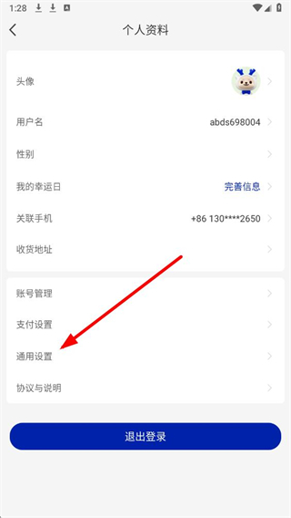 2、在个人资料页面中,找到通用设置选项并点击,进入通用功能的操作界面。