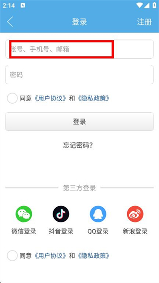 3、在登录页面中,点击输入框,输入账号。