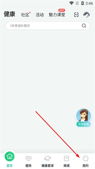 1、打开好享瘦APP,点击底部导航栏的我的选项。