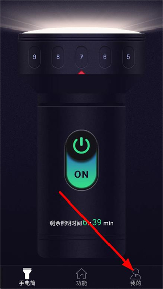 1、打开最亮手电筒app,在首页内点击右下角我的图标。