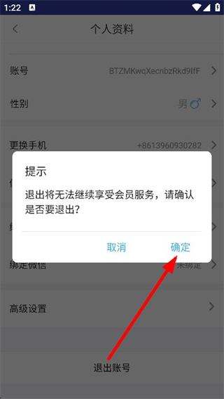 4、在弹出的提示弹窗中,点击确定,即可退出登录。