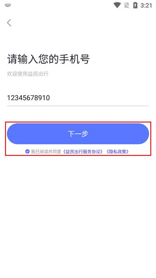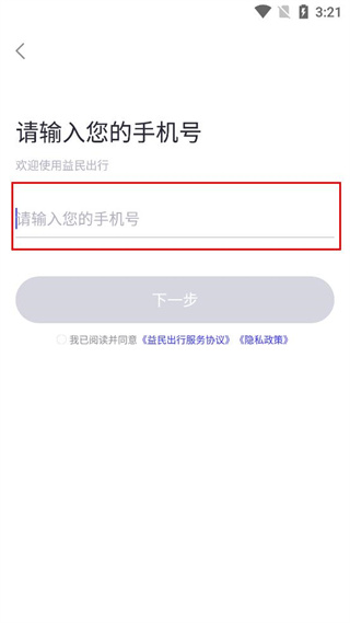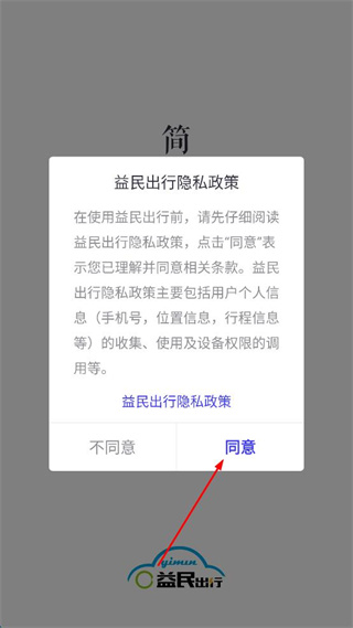 1、打开益民出行后阅读隐私政策,点击同意按钮进入主界面。