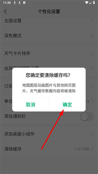 4、在弹出的您确定要清除缓存弹窗中,点击确定按钮,完成缓存数据的清理操作。