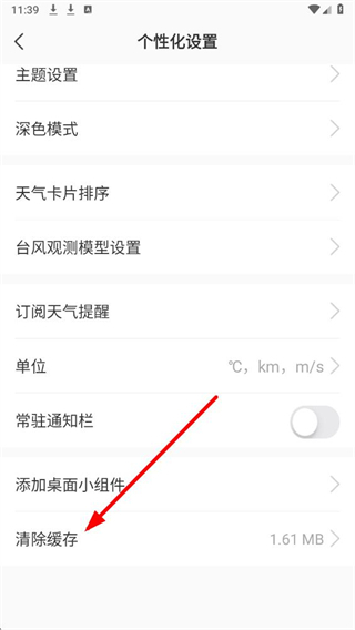 3、在个性化设置页面,找到清除缓存选项并点击,触发缓存清理的确认弹窗。