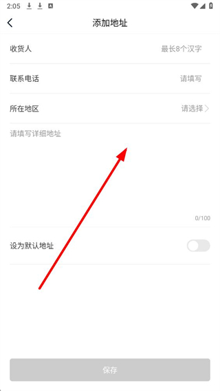 4、在添加地址页面,依次填写详细地址信息,点击保存完成收货地址添加。