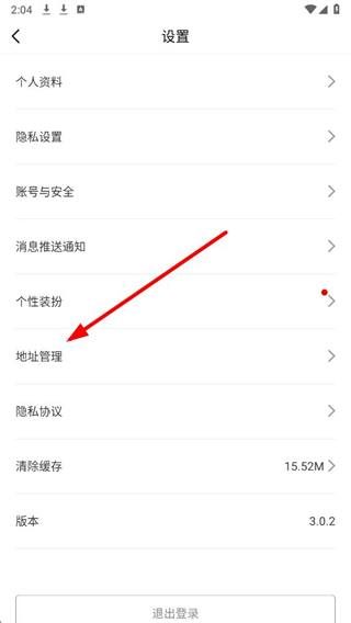 2、在设置页面,点击地址管理选项,进入收货地址的管理页面。