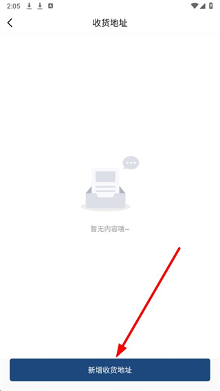 3、在收货地址页面,点击底部的新增收货地址按钮,进入地址填写页面。