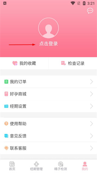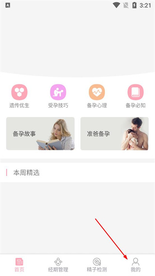 1、打开备孕辅助类APP,在首页找到底部导航栏的我的选项,点击进入个人页面。