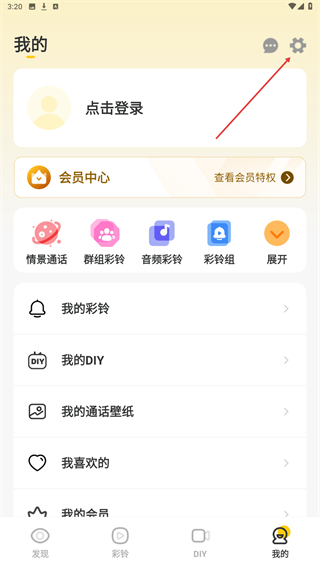 2、进入我的页面内,点击右上方齿轮状的功能按钮。