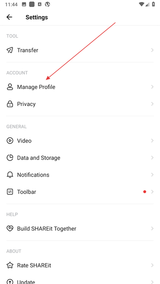 2、在Settings页面的ACCOUNT分类下,找到Manage Profile选项并点击,进入个人资料。