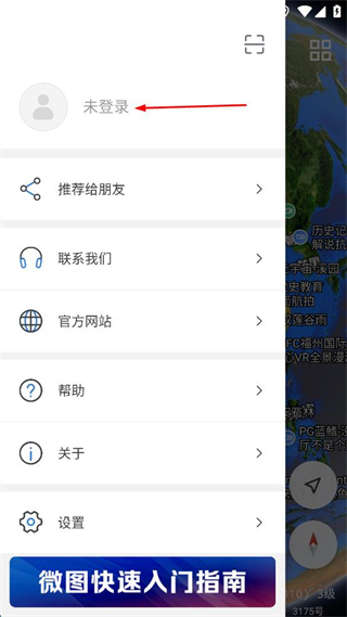 2、在主界面点击左上角的菜单按钮,展开功能列表后找到未登录选项。
