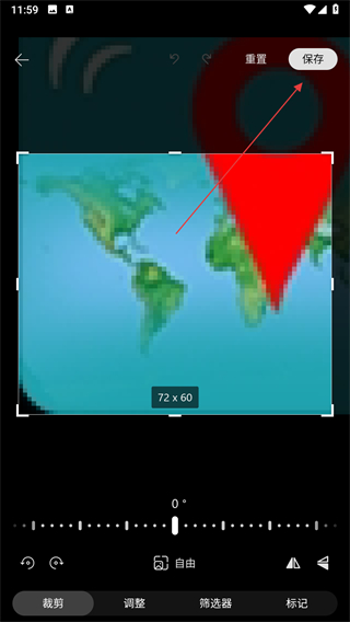 3、在编辑页面中通过拖动裁剪框调整裁剪范围,完成后点击右上角的保存按钮。