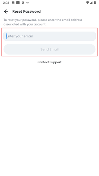 3、在输入框中,填写与账号关联的电子邮箱地址,填写完成后点击Send Email。