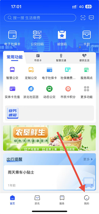 1、打开湖州掌上通app,在首页点击底部我的选项,进入个人中心页面。