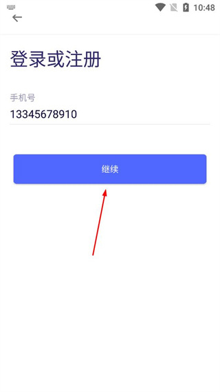 4、确认手机号填写完成后,点击页面中的继续按钮推进登录流程。