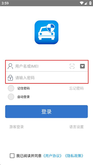 2、在登录页面的对应输入框,依次填写用户名或IMEI信息以及匹配的登录密码。
