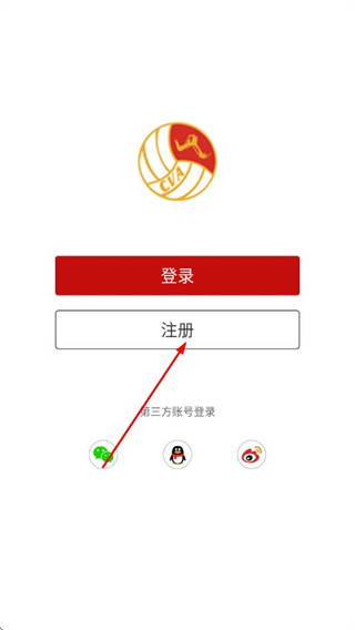 1、打开中国排球协会APP,点击注册按钮,进入注册流程。