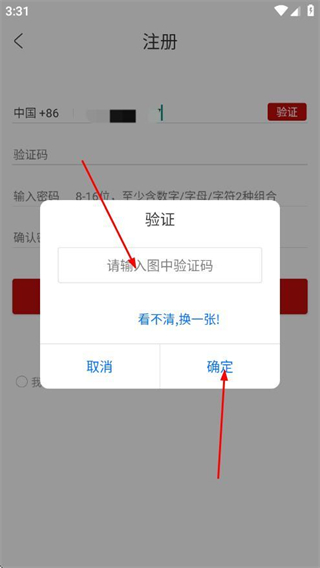 2、在注册流程中,输入图中验证码,点击确定完成验证。