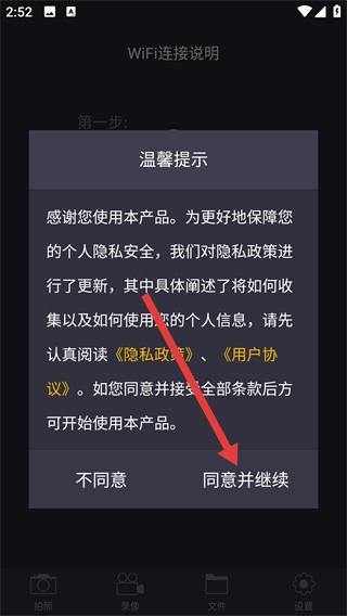 1、打开LuckyCam,在弹出的提示框中点击同意并继续。