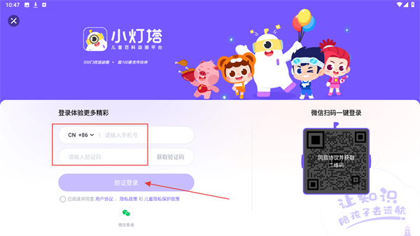 3、输入手机号、验证码后,点击验证登录即可完成。