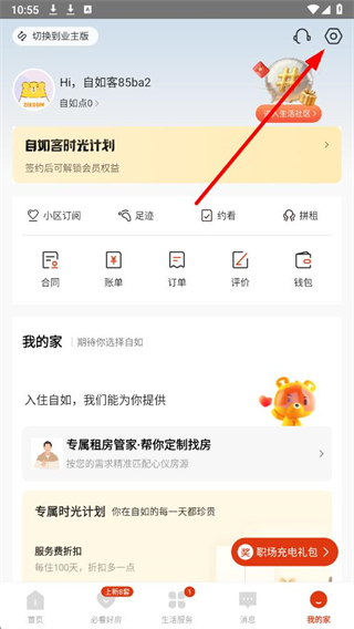 1、打开自如app,在我的家界面,点击右上角的设置图标,进入设置页面。