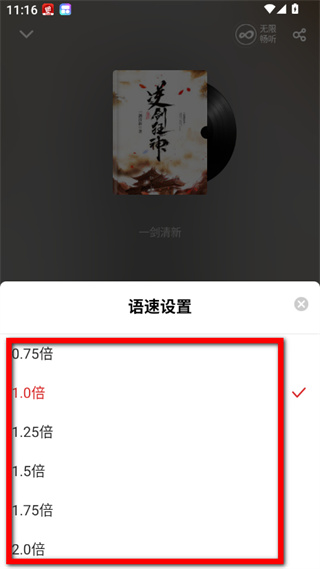 4、在语速设置弹窗中,选择对应倍速,即可完成听书语速调整。