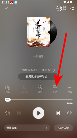 3、在听书播放界面,点击语速选项,弹出语速设置弹窗。