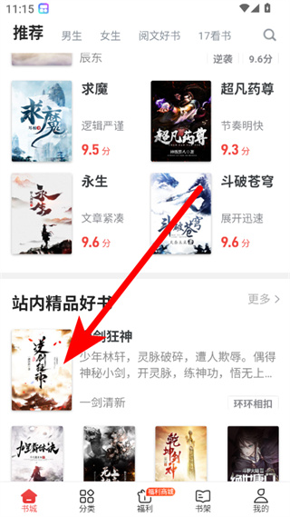 1、在追书神器书城页面,选择目标书籍,点击进入书籍详情页。