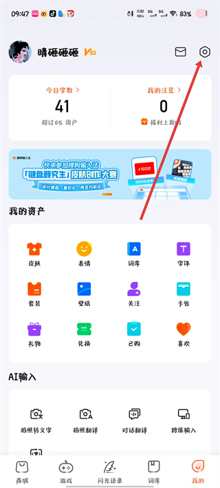 1、打开搜狗输入法,点击右上角的设置。