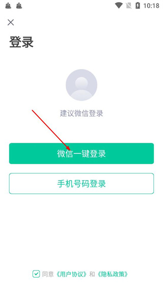 4、在登录界面中,选择绿色的微信一键登录按钮,即可进行账号登录操作。