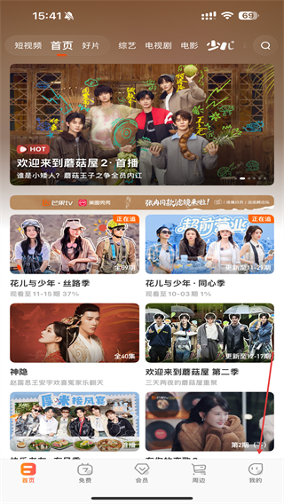 1、打开芒果tv的软件,进入首页点击右下我的图标。
