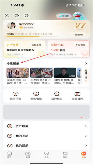 2、在个人中心页面点击播放记录,进入播放记录列表页面。