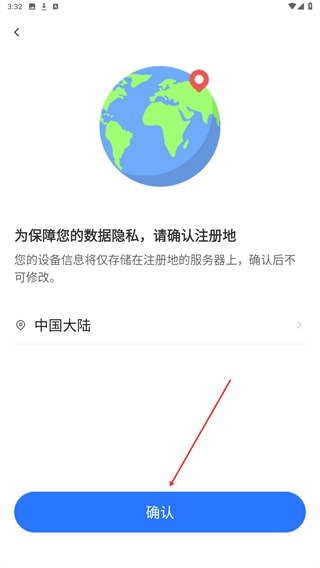 2、进入注册地确认页面后,点击确认的按钮。