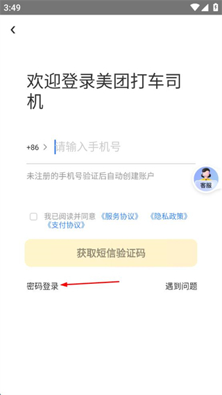 3、在密码登录界面的对应输入框,填写手机号以及匹配的登录密码。