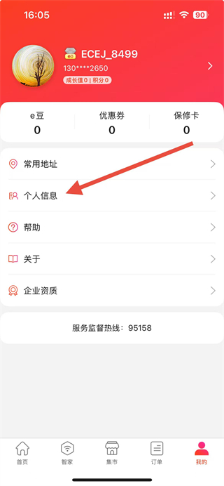 1、在e城e家app首页点击我的选项,进入个人页面。
