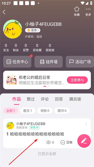 3、即可在自己的个人主页中查看刚发布的帖子。
