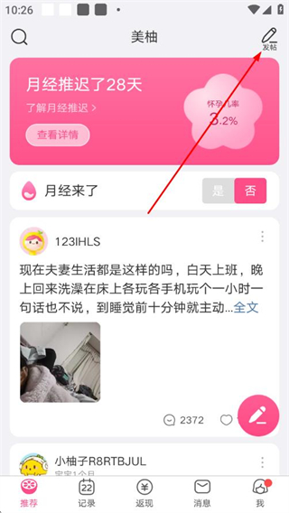 1、在美柚首页点击底部的记录选项,进入记录页面。