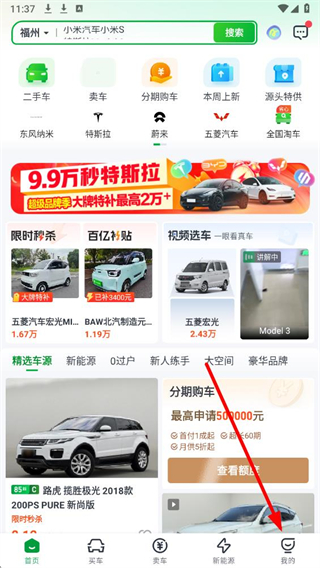 1、在瓜子二手车界面,点击底部我的,进入我的个人页面。