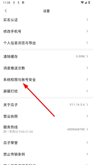 3、在设置页面中,找到系统权限与账号安全选项并点击,进入对应的权限管理页。