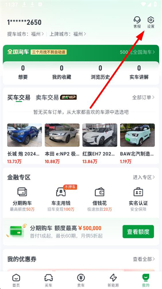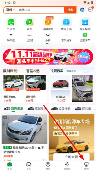 1、打开瓜子二手车APP,点击底部导航栏的我的,进入个人页面。