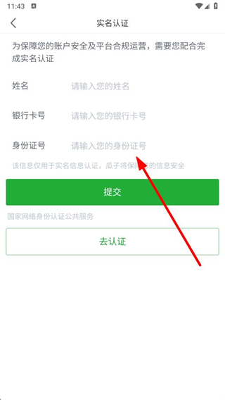 4、在实名认证页面,依次输入个人信息,按提示完成实名认证操作。