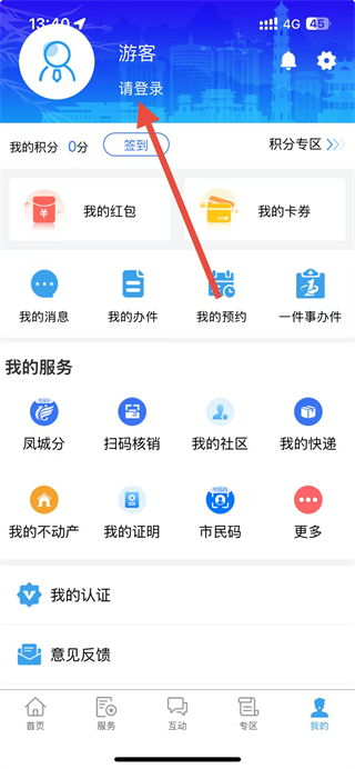 2、在个人页面中,找到请登录区域并点击,进入晋来办的登录界面。