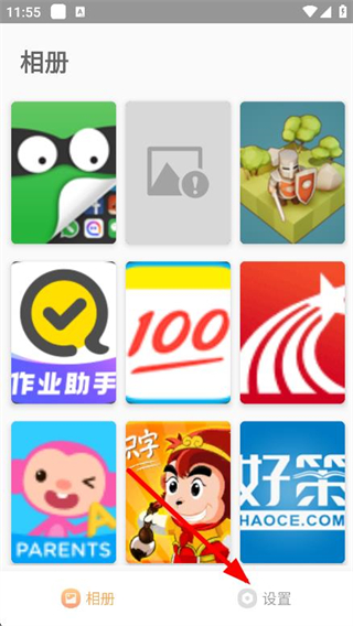 1、打开截屏助手,在相册页面点击底部的设置选项。