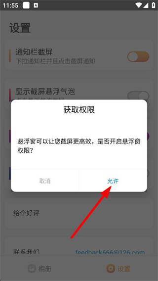 3、点击允许开启悬浮窗权限,即可启用悬浮气泡。