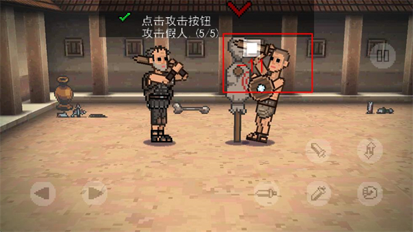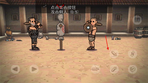 2、在训练场景中点击攻击按钮,对假人发起攻击完成指定的攻击次数。