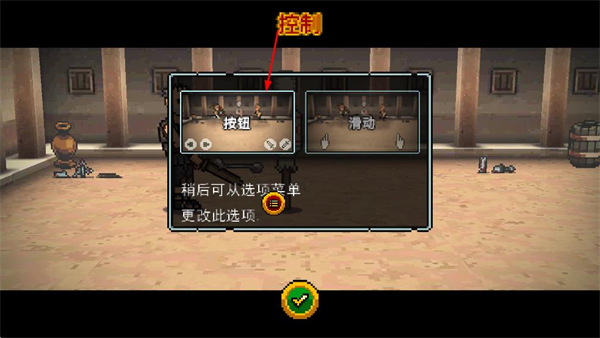 1、在控制选项界面选择按钮模式,点击确认进入游戏的训练场景。