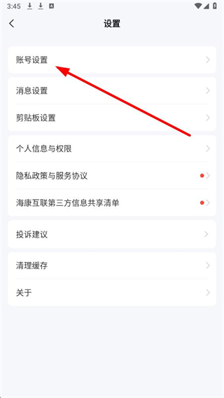 2、在设置界面中,找到账号设置选项并点击,进入账号设置页面。