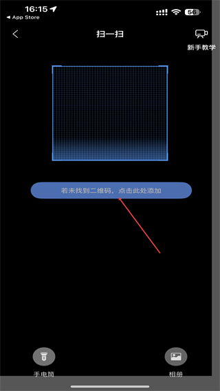2、在扫一扫的页面内,点击下方此处添加的按钮。